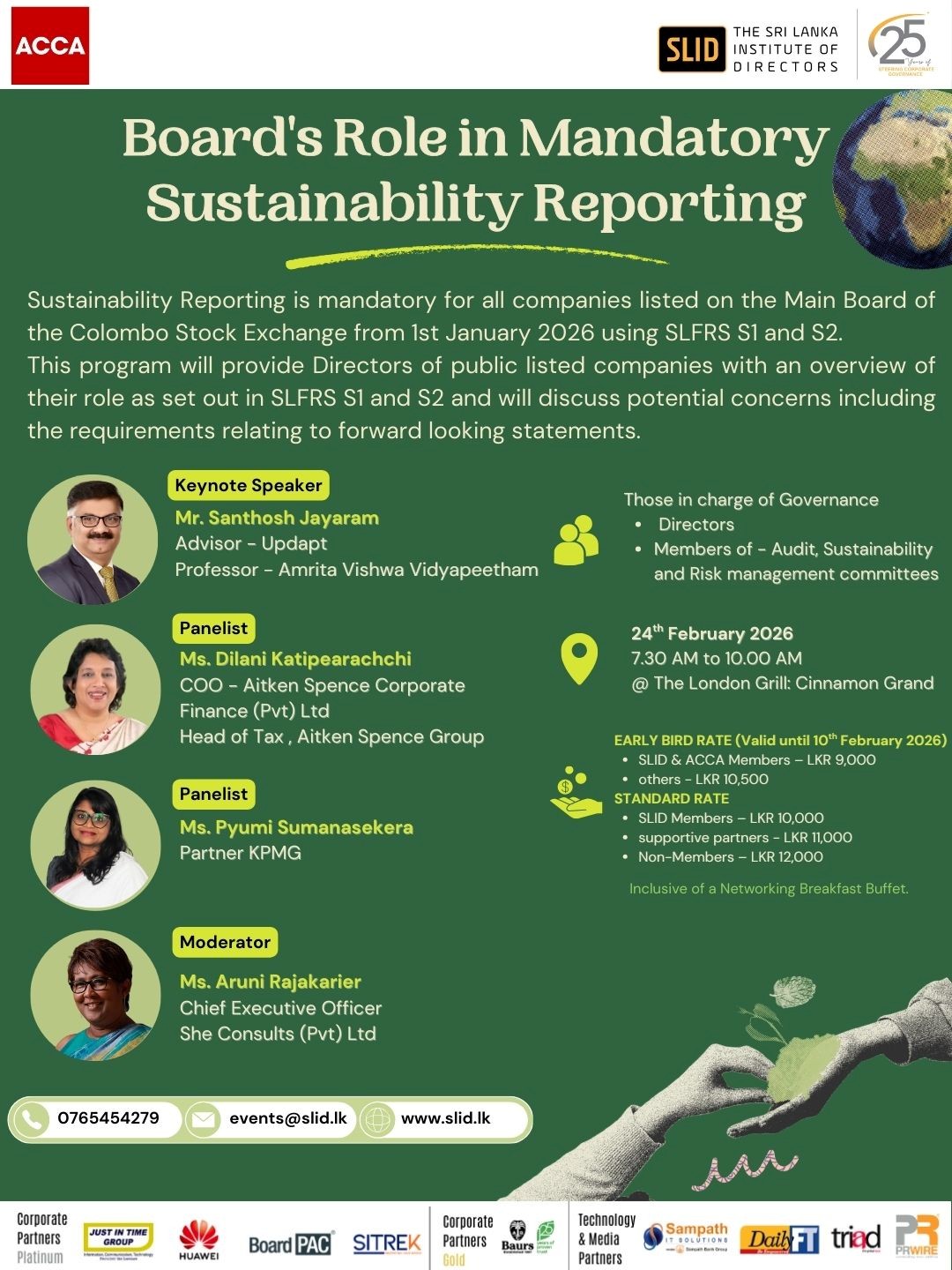 Mandatory Sustainability Reporting is here. From 1 January 2026, all companies listed on the Main Board of the Colombo Stock Exchange must comply with SLFRS S1 & S2.